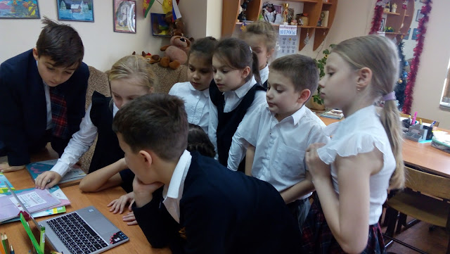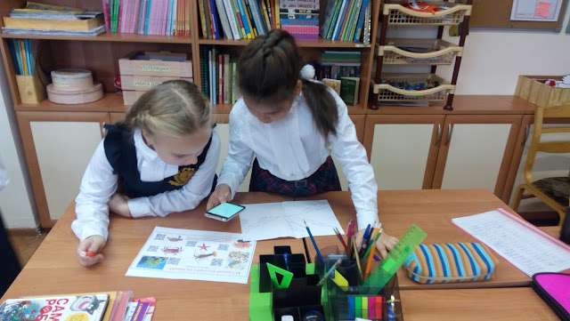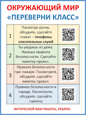 Тематическая неделя очень помогла ребятам сплотить команды, потому что многие задания мы выполняли в группах. Если раньше домашняя работа вписывалась в две колонки (индивидуальная обязательная и индивидуальная дополнительная: опережающая или коррекционная), то с понедельника добавилась третья колонка - групповая работа. Школа полного дня - это подарок не только для ученика, но и для учителя, потому что можно воплотить массу задумок через дополнительную работу. Вся групповая и дополнительная работа выносится в больше мере на самоподготовку и внеурочное время. Сделав всю домашнюю работу, ребенок уходит в "свободное плавание", т.е. выбирает личный фронт дополнительной работы или ребята делают групповые мини-проекты. Небольшой пример: групповая работа на дом - литературное чтение. С помощью QR-кодов найти информацию о морских жителях из рассказа М.Горького "Случай с Евсейкой", сделать коллективный кластер "5 интересных фактов". К произведению К.Паустовского подготовила лист-путешественник с QR-кодами, которые выводили ребят на словарики, информацию об авторе, на м/ф по мотивам произведения...Групповая работа кипит не только после уроков. На уроках окружающего мира использовали QR-коды, работая в цветных группах. Каждая группа получила свое задание, которое нужно было сделать в группе, а потом разъяснить остальным. В процессе двух листов-помощников мы отработали тему по ПДД "Чтобы путь был счастливым" и "Дорожные знаки"...Посмотрев ролик, надо было найти общие признаки у знаков разных видов (форма, цвет...), привести примеры знаков, рассказать о них...А вот тему "Огонь, вода и газ" вынесла в перевернутый формат. Ребята по группам получили домашнее задание поработать с ссылочками в маршрутном листе и в учебнике по своей теме, составив плакаты по своему блоку.Работа на неделе просто кипела. Группы сделали отличные проекты, рассказали столько интересного, требовали новых "маршрутов". Некоторые группы не просто составили кластеры, а создали групповые презентации (так, надо начинать думать про неделю-навык по внедрению Google формы, где можно отдаленно делать презентации и не только... Но пока доделаем начатое -главный принцип недели-навыка - довести до конца). Некоторые дети убежали вперед, уже учатся генерировать QR-коды, выбрав сервис, который предлагает творческий подход к созданию QR-кода (логотипы, выбор конфигурации и цвета)... Я и не сомневалась, что это привлечет больше... Но пока это только первые шаги. Надеюсь, что мои первопроходцы в последствии станут для ребят и для меня в том числе помощниками)))Вот так мы работали:Всю неделю и в фойе работал стенд для ребят. Это очень удобно для рабочих переменок, а также заинтересовывает ребят из других классов. А у нас в плане обязательно будет "научился сам - научи другого".